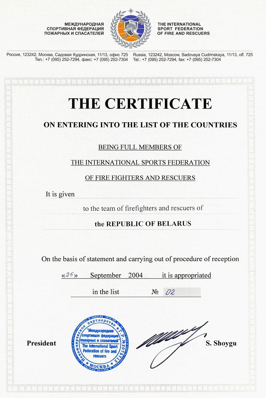 ОО «БФПСС» является членом «Международной спортивной федерации пожарных и спасателей».